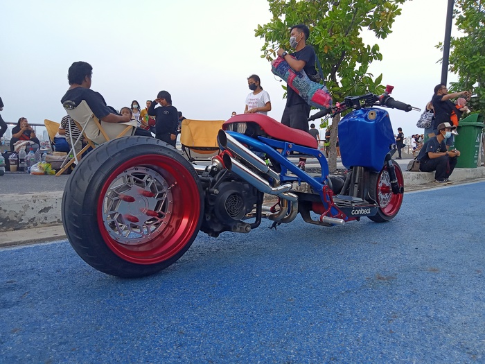 А это, парковка для мотоциклов у пляжного кафе. Скоро будет тонель