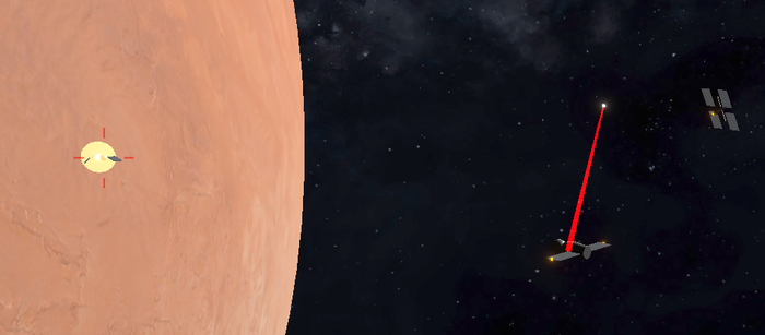 Я добавил возможность совершать прыжки между Землей и Марсом. Игроки синей команды начинают игру на Земле около своей станции. Игроки оранжевой команды начинают игру на Марсе. Чтобы совершить прыжок на другую планету, нужно оказаться в секторе прыжка, который отмечен на экране специальной голубой зоной и нажать кнопку прыжок.