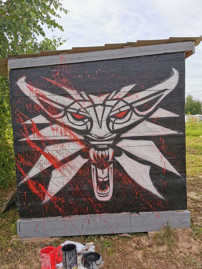 Пока остановилось на одной стене, думаем, что изобразить на другой. За основу взят волк с медальона Ведьмака.