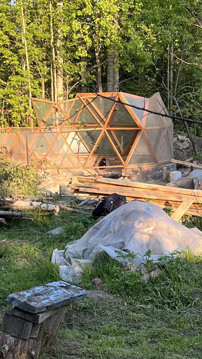 1666 Andrey649 6 месяцев назад Ответ на пост «Бассейн в геокуполе»2 А вот моя. Правда это теплица. Месяц отпуска потратил на все. Показать полностью 4 [моё] Геокупол Строительство Дача Своими руками Ответ на пост Длиннопост 11 5 Ещё 0