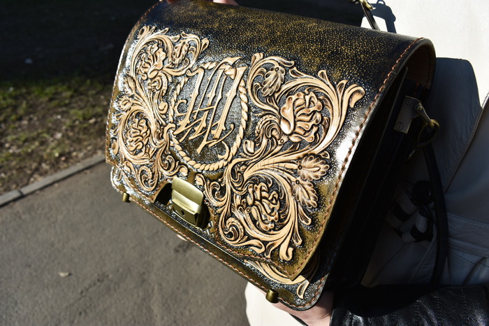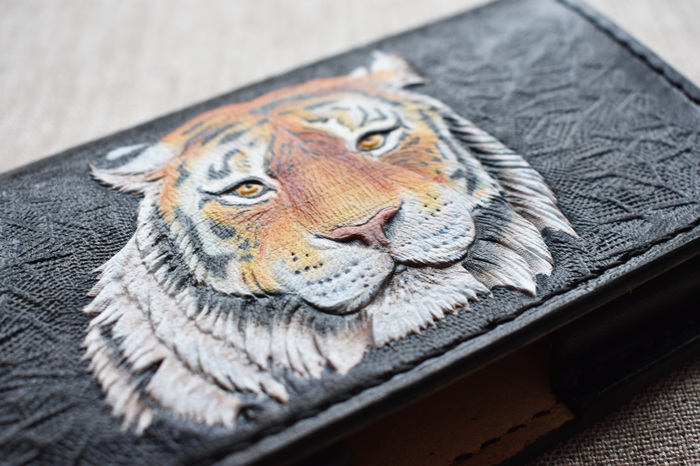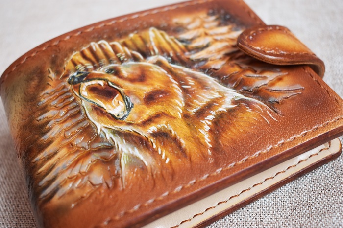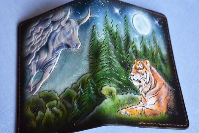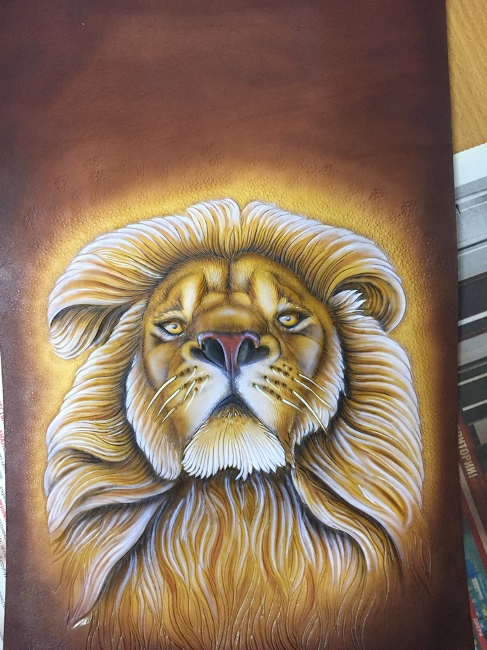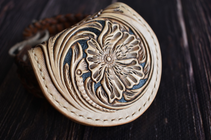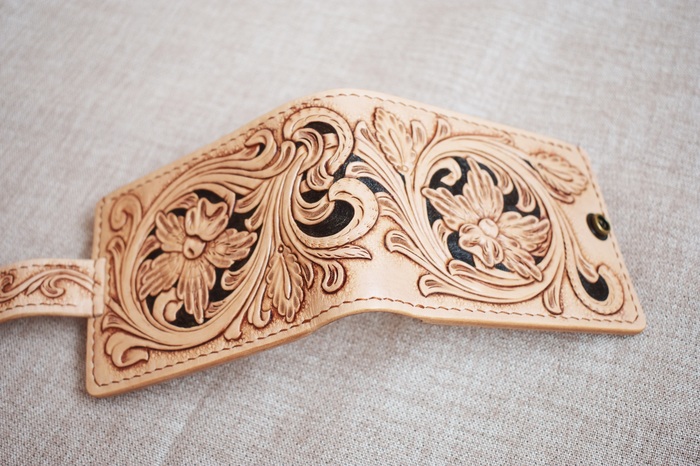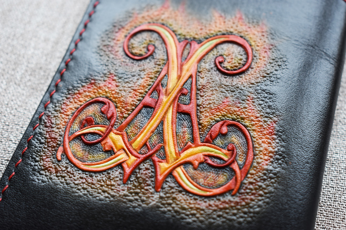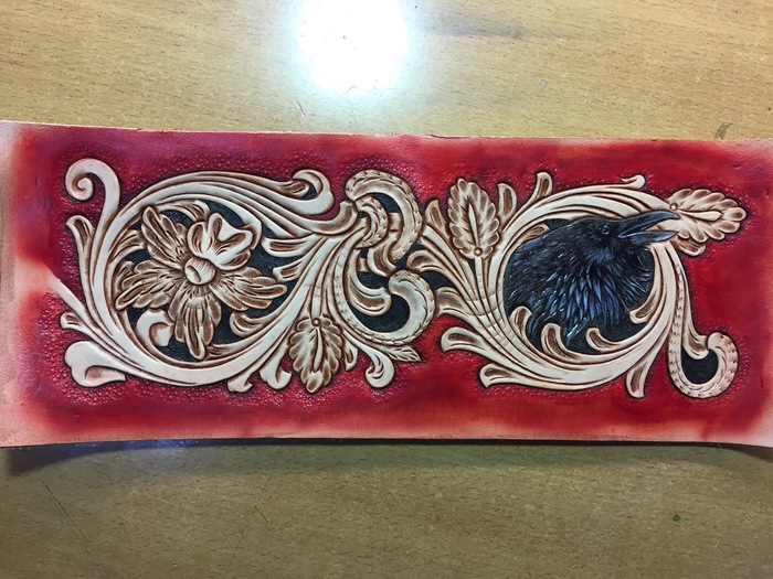 Вот примерно такой она должна быть на этапе переноса изображения. Само понимание-"готова ли кожа или ещё нет?"- только с опытом. И, да! В этом вопросе не нужно торопиться) лучше ,чтоб кожа чуть подсохла, чем работать по мокрой-это прям садо-мазо:ни удовольствия от проделанной работы ни нормального результата. Что даёт правильно подготовленная к перенесению рисунка кожа-четкие линии для последующего прорезания. Делать это можно сразу после переноса изображения.