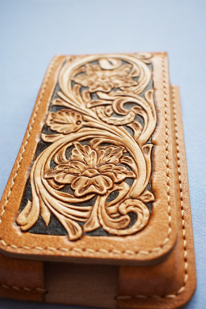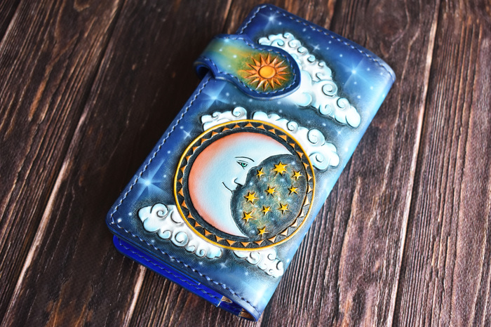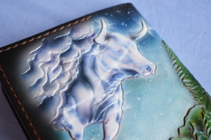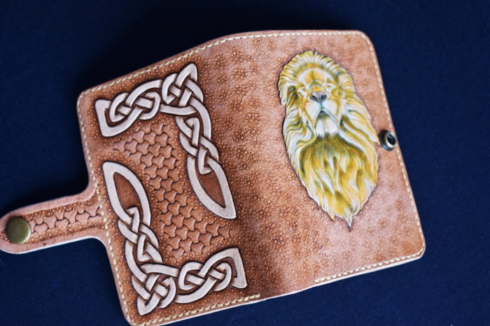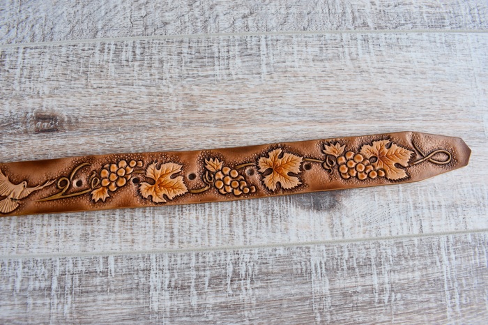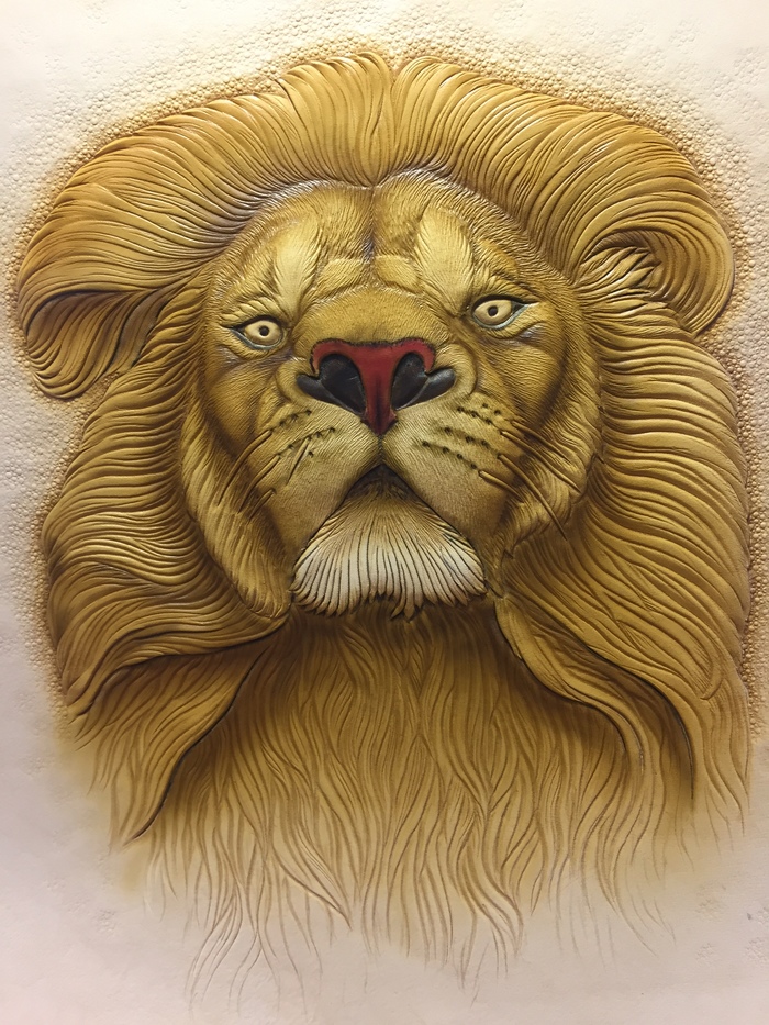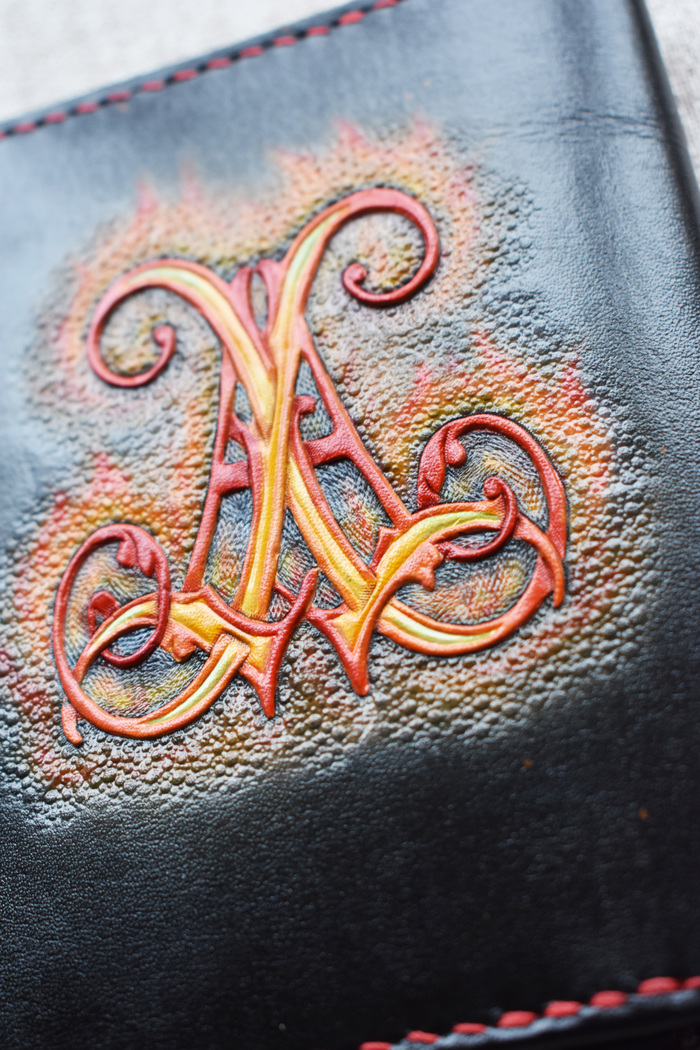Вот примерно такой она должна быть на этапе переноса изображения. Само понимание-"готова ли кожа или ещё нет?"- только с опытом. И, да! В этом вопросе не нужно торопиться) лучше ,чтоб кожа чуть подсохла, чем работать по мокрой-это прям садо-мазо:ни удовольствия от проделанной работы ни нормального результата. Что даёт правильно подготовленная к перенесению рисунка кожа-четкие линии для последующего прорезания. Делать это можно сразу после переноса изображения.