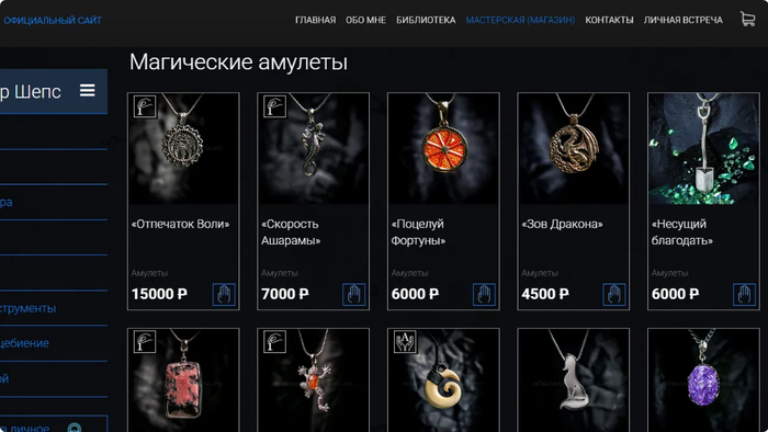 Как выяснил SHOT, ценники на разные «волшебные» ништяки от популярного медиума — повелителя зелёного забора — стоят очень даже не бюджетно. Например, авторский браслет от Шепса продаётся аж за 145 тысяч рублей. Самая дешевая вещь, которую мы смогли найти — это кол, который нужно воткнуть в осину или в могилу в полнолуние. Стоит такая «невероятно нужная вещь» 1,1 тыс рублей.