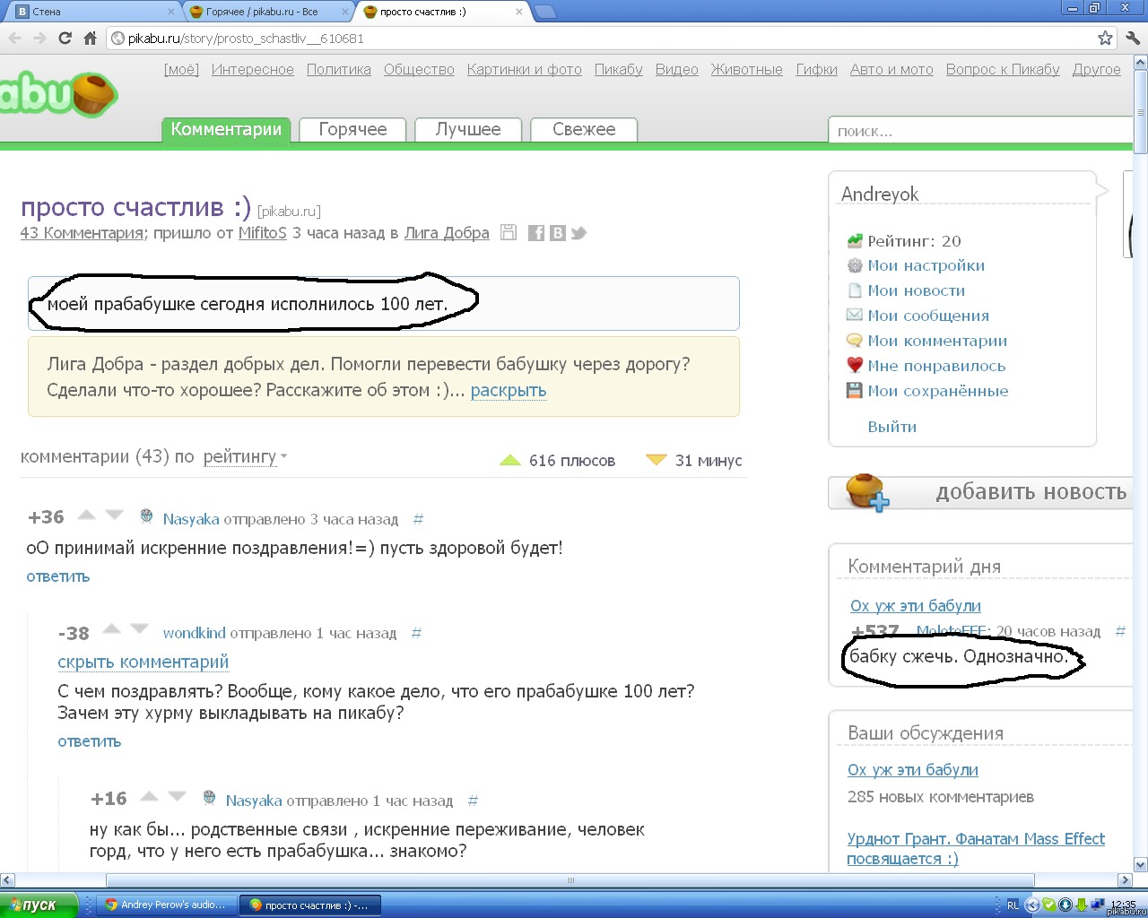 Ловим стопицот комментариев от такиж слоупоков ("да-да, чувак, раньше было не так", "вали из этой компашки, там одни дауны - ты кросавчик", "куда смотрит путин?", "наша страна - говно и люди имбецилы") Каждый отписавшийся также ставит себе плюсик в личной таблице. Ему ж не все равно.