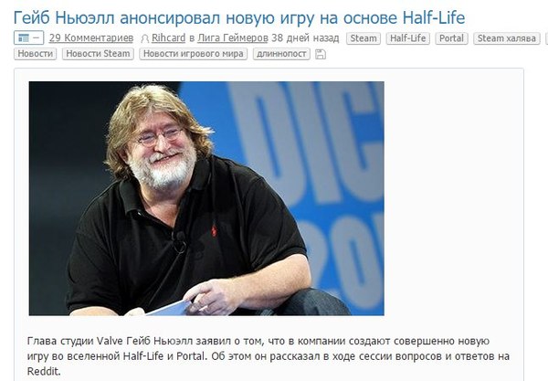 4485 Andru.Xa Умение придумывать заголовки 8 лет назад Вот отрывок из интервью с Гейбом А вот заголовок Half-life Интервью Заголовок Гейб Ньюэлл