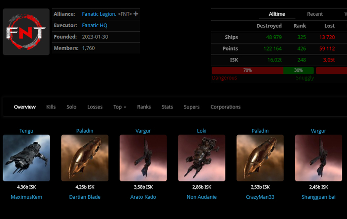 Альянс Fanatic Legion. <FNT> хотя и образован в 2023году, но состав судя по кб корпорации старички-выходцы из других ру-альянсов
