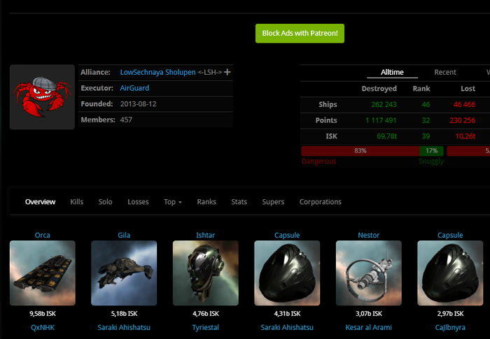 LowSechnaya Sholupen <-LSH-> альянс с 2014года обитает в лоусек системах, региона Aridia.