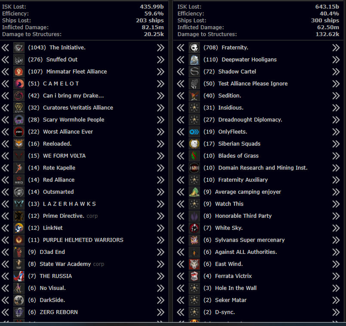 130 пилотов по статистике кб, есть капитальный и суперкап флот, часто участвуют в крупных боях. состоят в Winter коалиции