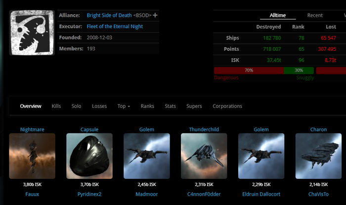 ПВП альянс Bright Side of Death <BSOD> один из старейших существующих по настоящее время в ру-сегменте. Обитает в NPC регионе Curse вместе с Death or Glory.