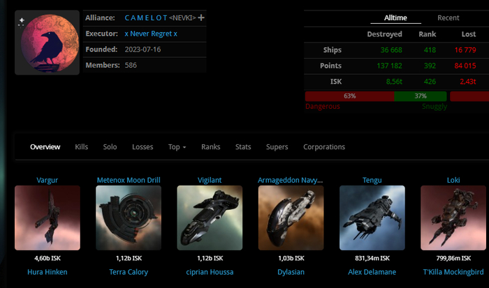 Альянс C A M E L O T <NEVKI> ПВП альянс, создан в 2023г основное место дислокации - лоусек, часто летают в ПВП