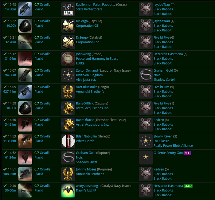 известен не только охотой на фармящих игроков - "крабов", дропами на перегонные капиталы и суперкапиталы, охотой на перевозчиков, но и может собирать флота и воевать за контроль своего региона. Количество персонажей - 60, что для пиратского ру-альянса очень неплохо.