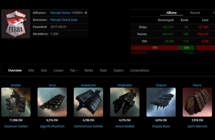 Альянс Ferrata Victrix <FERRA> ведёт свою историю с 2017года, ПВП альянс, контролирует регион Stain. есть несколько систем в соседних клайм нулях.