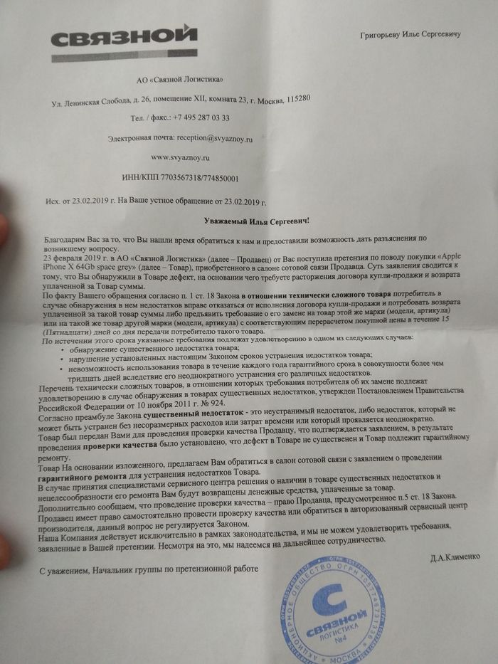 Выводы для себя мы сделали- и про качество техники, и про отношение Связного к своим клиентам и про отношение АСЦ. Надо было минуя этот гнилой магазин сразу ехать в АСЦ.