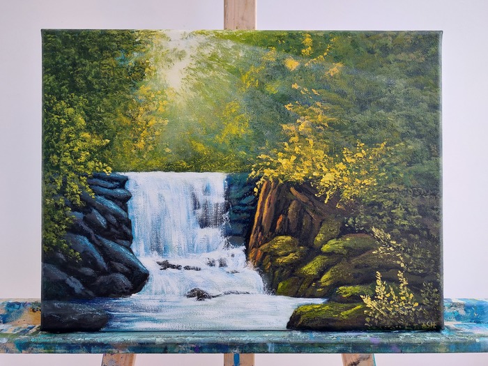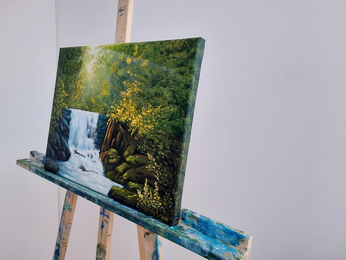 32 Angeliel Лига Художников Лес, водопад. Масло, холст на подрамнике 30 / 40см 3 года назад Впервые рисовала что-то подобное. Идею картины взяла в интернете. Показать полностью 3 [моё] Картина маслом Водопад Лес Длиннопост Ещё 0