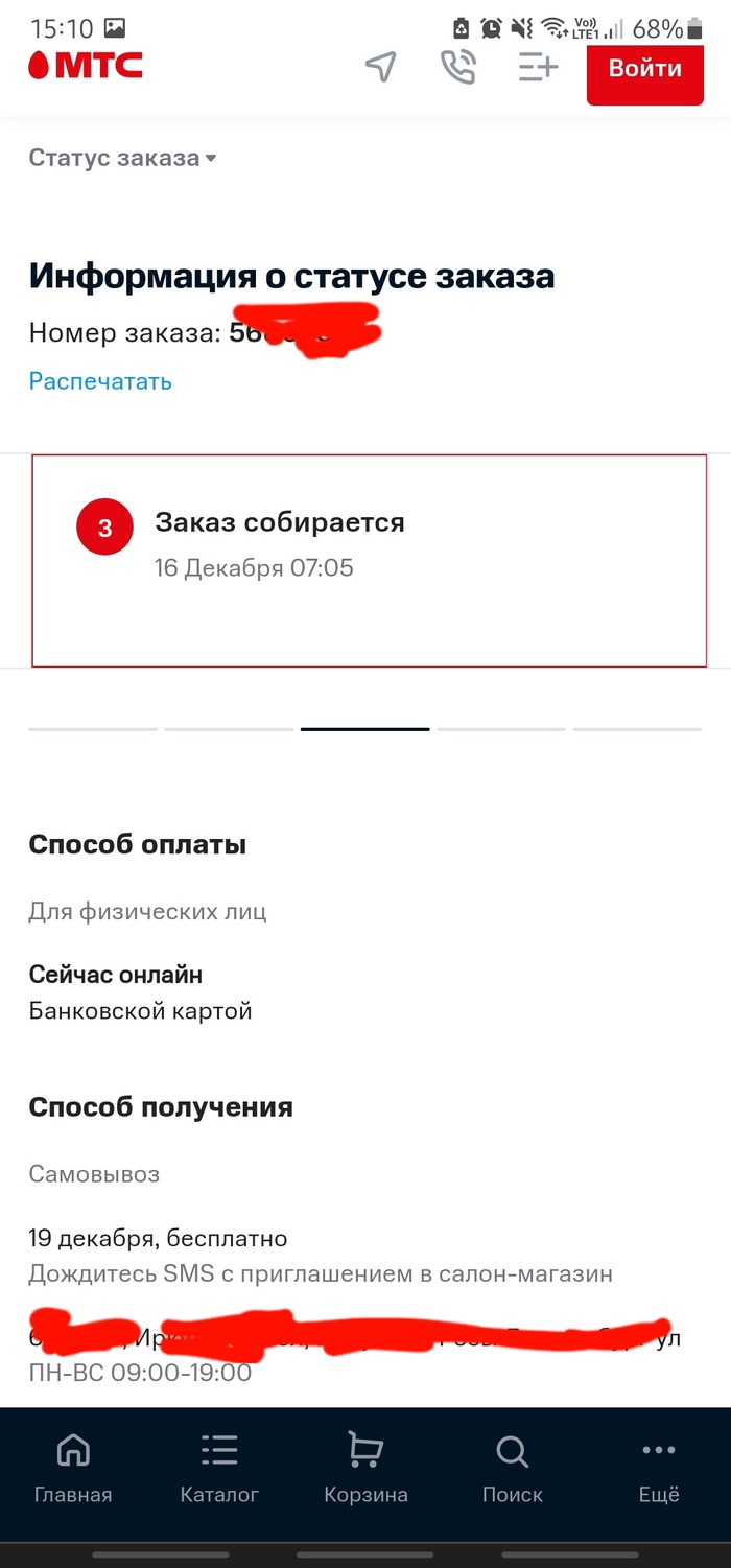 Сделала заказ, оплатив картой на сайте (единственный вариант оплаты), доставка до ближайшего ОП, самовывозом. Была назначена на 19.12.21 иии..