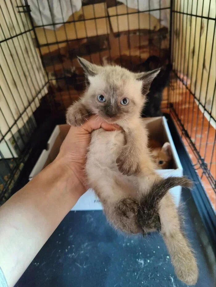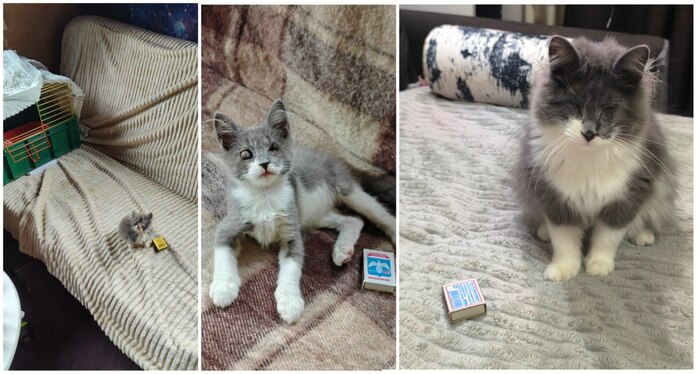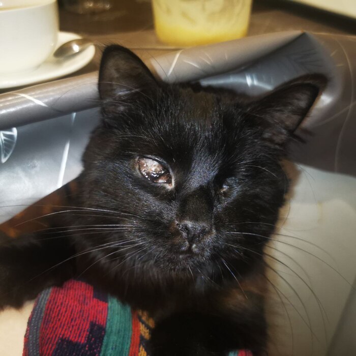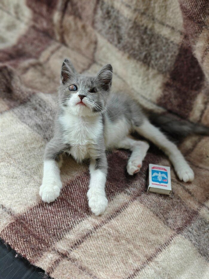 Собираемся с друзьями ехать купаться и загорать. Зашла в ВК. Увидела пост и понеслось. Сначала поругалась с ТС из-за того, что он не дал мне телефон того, кто фотографировал. Была жара и котенка мог хватить удар. Потом, не долго думая, мы мчимся в дорогу. В пути обзваниваем знакомых, которые могли бы хоть отнести котенка в тень. Находим таких знакомых. По приезду нас уже ждут с котенком в коробке.