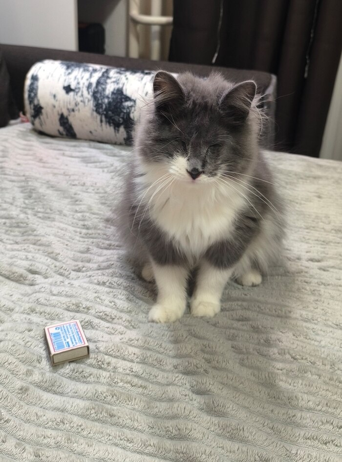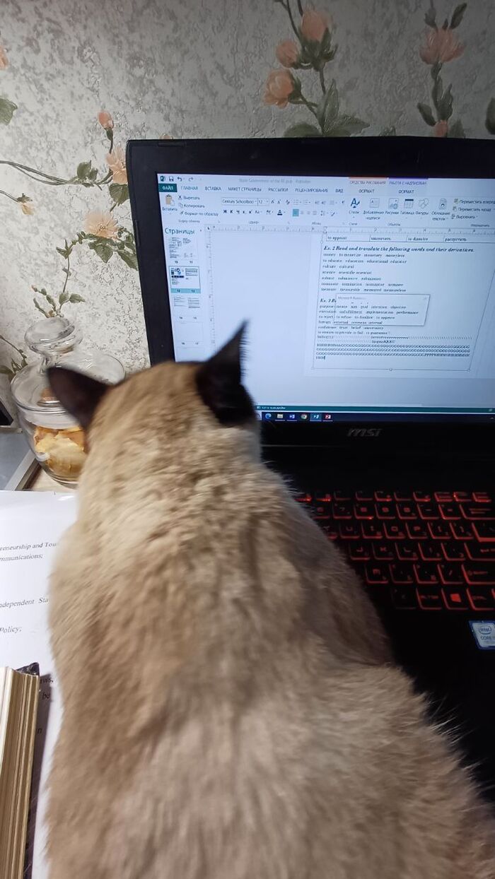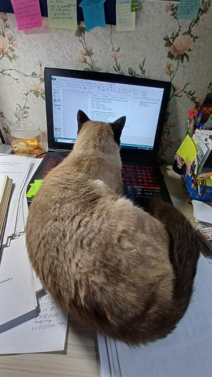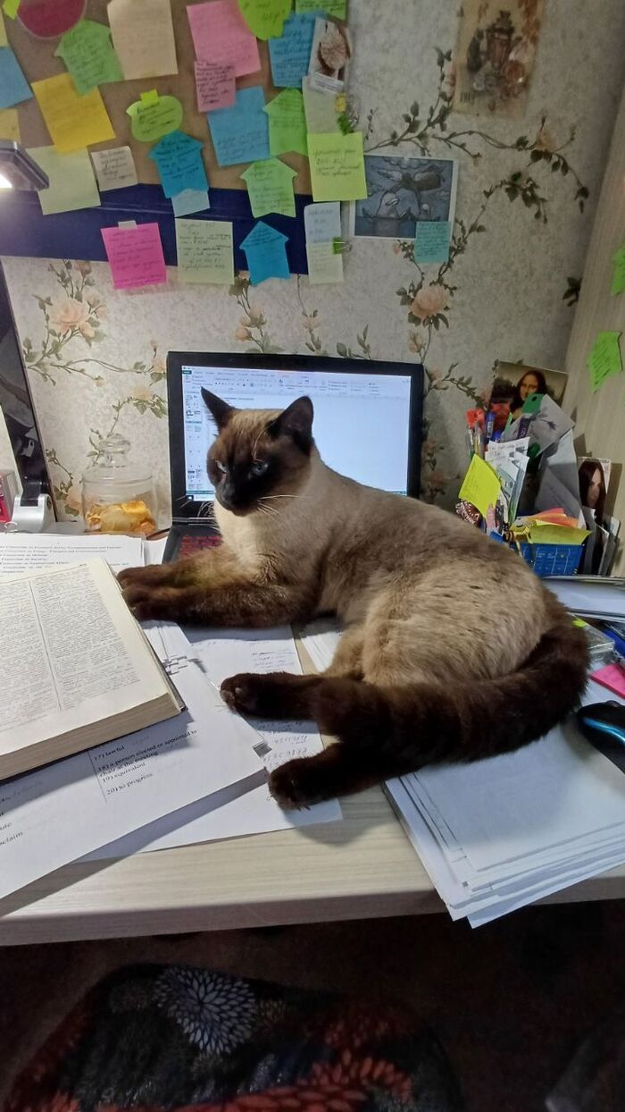 Всем привет от Милуна. У него все более менее неплохо. Садится напротив меня и мурчит.