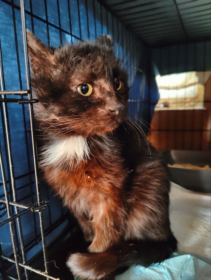 Собираемся с друзьями ехать купаться и загорать. Зашла в ВК. Увидела пост и понеслось. Сначала поругалась с ТС из-за того, что он не дал мне телефон того, кто фотографировал. Была жара и котенка мог хватить удар. Потом, не долго думая, мы мчимся в дорогу. В пути обзваниваем знакомых, которые могли бы хоть отнести котенка в тень. Находим таких знакомых. По приезду нас уже ждут с котенком в коробке.