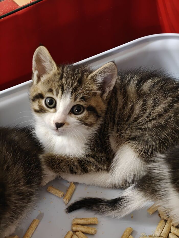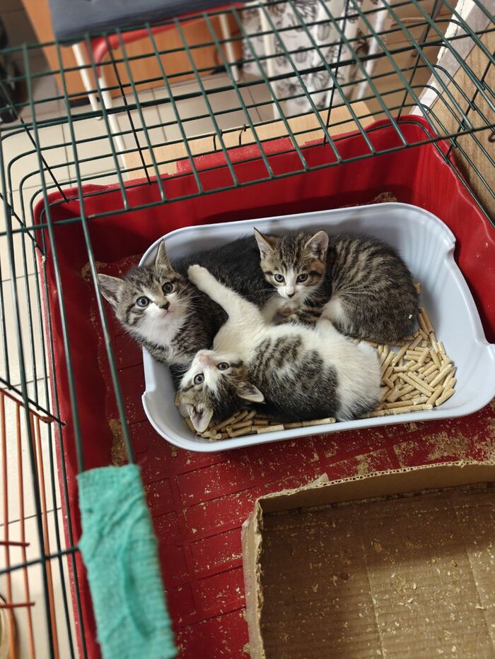 Сейчас будем срочно искать им дома. Котята от домашней кошки, нежные бурундуки. Сразу же пошли в лоток. Очень надеюсь, что все будет хорошо. Но негативный опыт, конечно, давит.