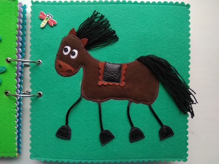 На шестой странице озорная лошадка из велюра с кожаными копытами и седлом. На гриве и хвосте можно заплести косы :)