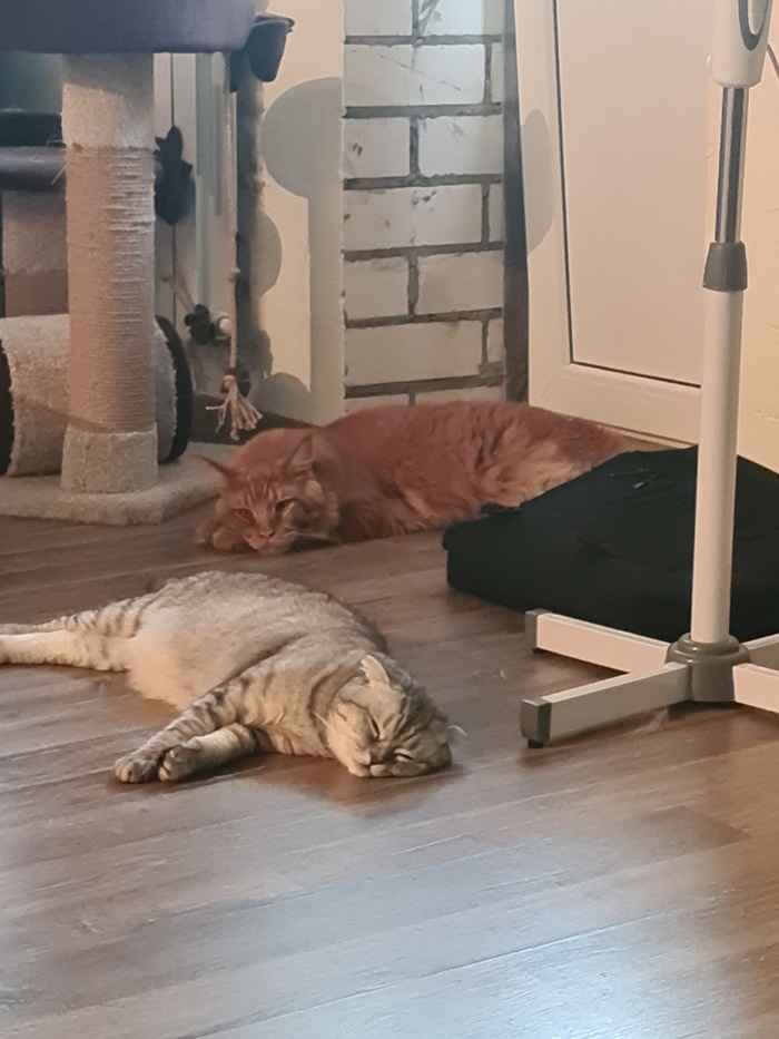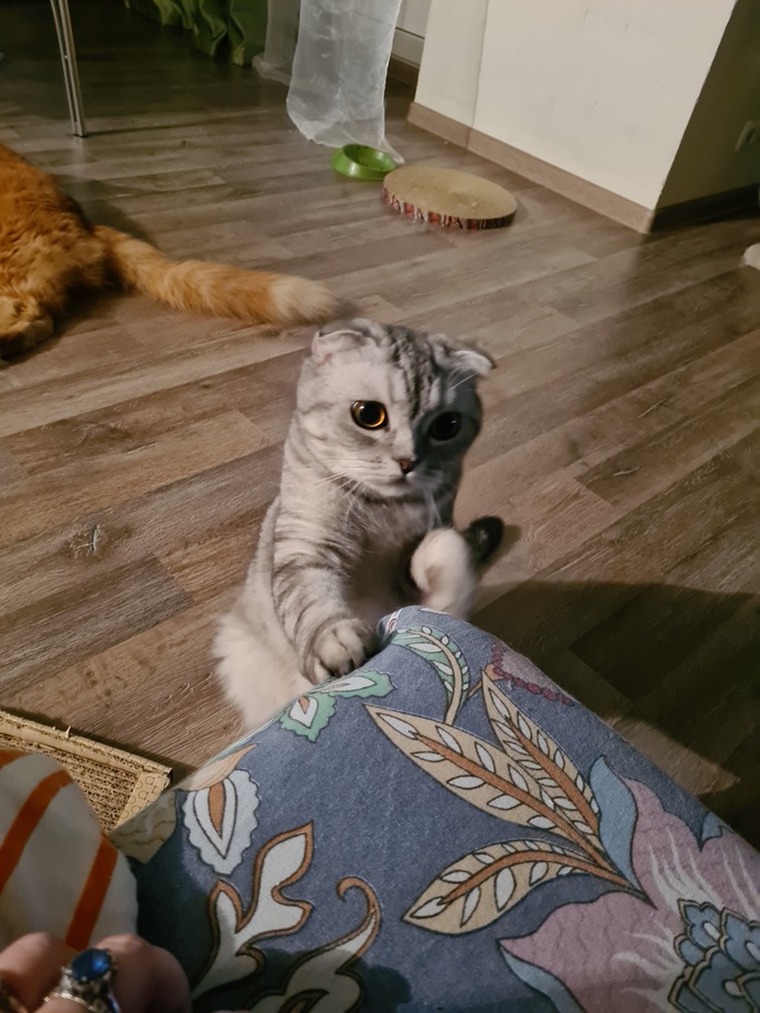 Тут Моисей/Мойша приёмный кот. Освоился. Мне игрушки таскает в кровать, повадки как у пса. Очень сложно мне далось вычесать и срезать старые колтуны, которые после прошлых хозяев были. Но вкусняшки творят чудеса.