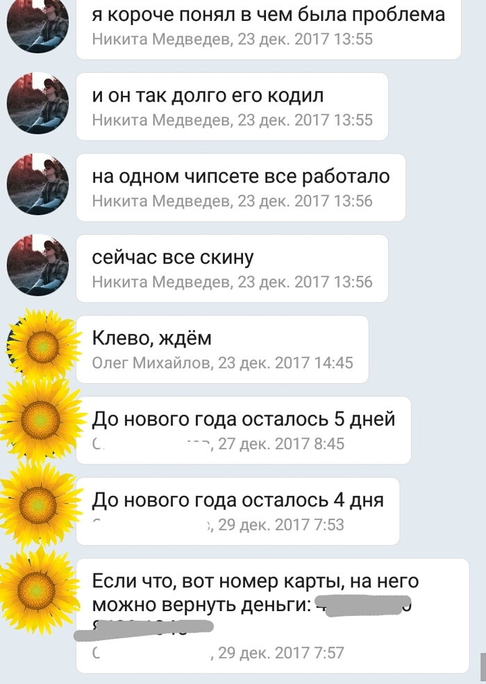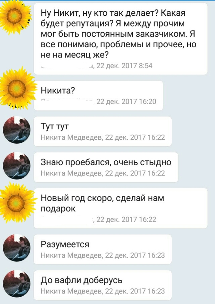 Ну и вот так все получилось, крайний срок пролюблен, очень жалко денег, жалко планов. А особенно обидно за такое грандиозное неуважение человека к своим заказчикам и к своей работе, которая у него неплохо получалась, даже весьма.