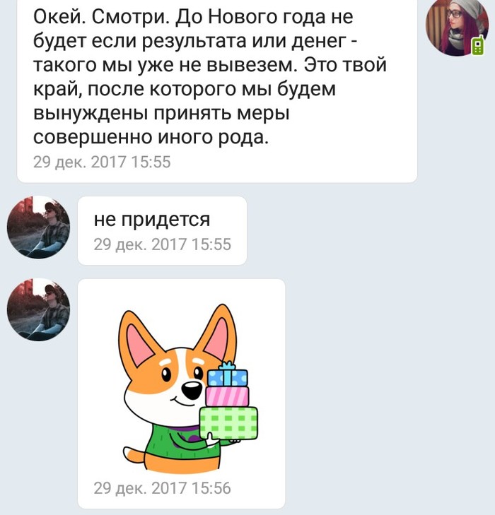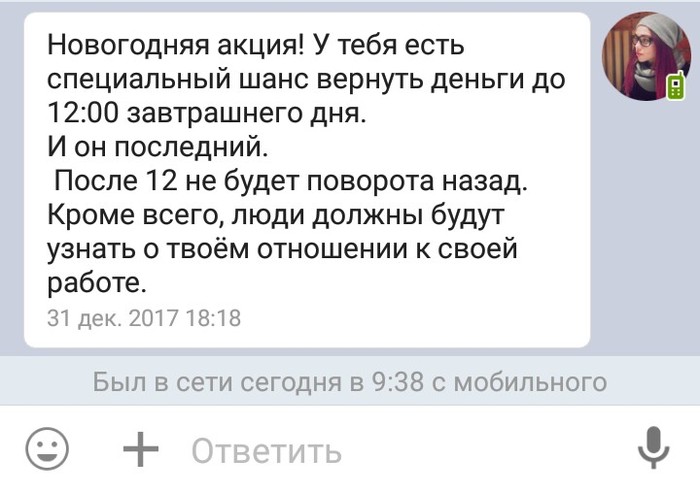 Чудовищно напомнила ему о крайнем сроке в новогодний вечер.