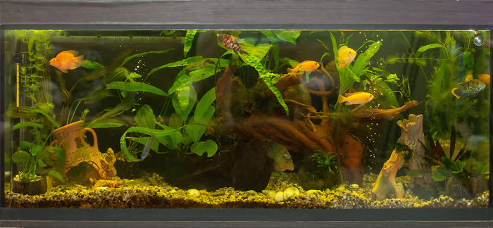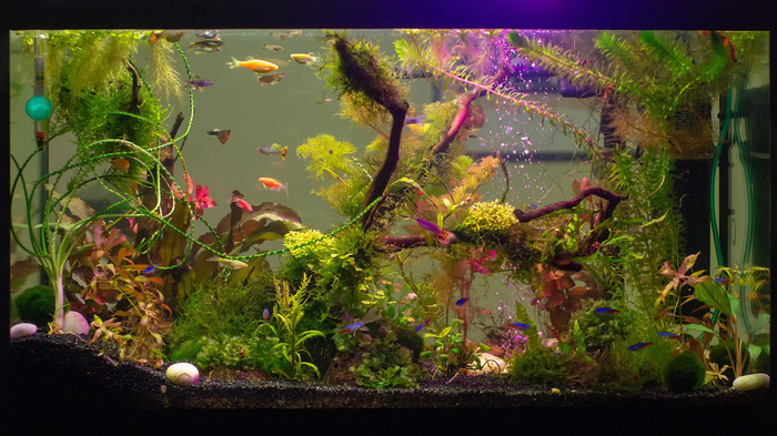История аквариумистики в нашем отдельно взятом доме началась не так давно: в ноябре прошлого года. Почитали статьи, посмотрели видео, окончательно запутались и завели аквариум на 240 л. с ярким фоном и пластиковыми растениями. И были неописуемо рады!