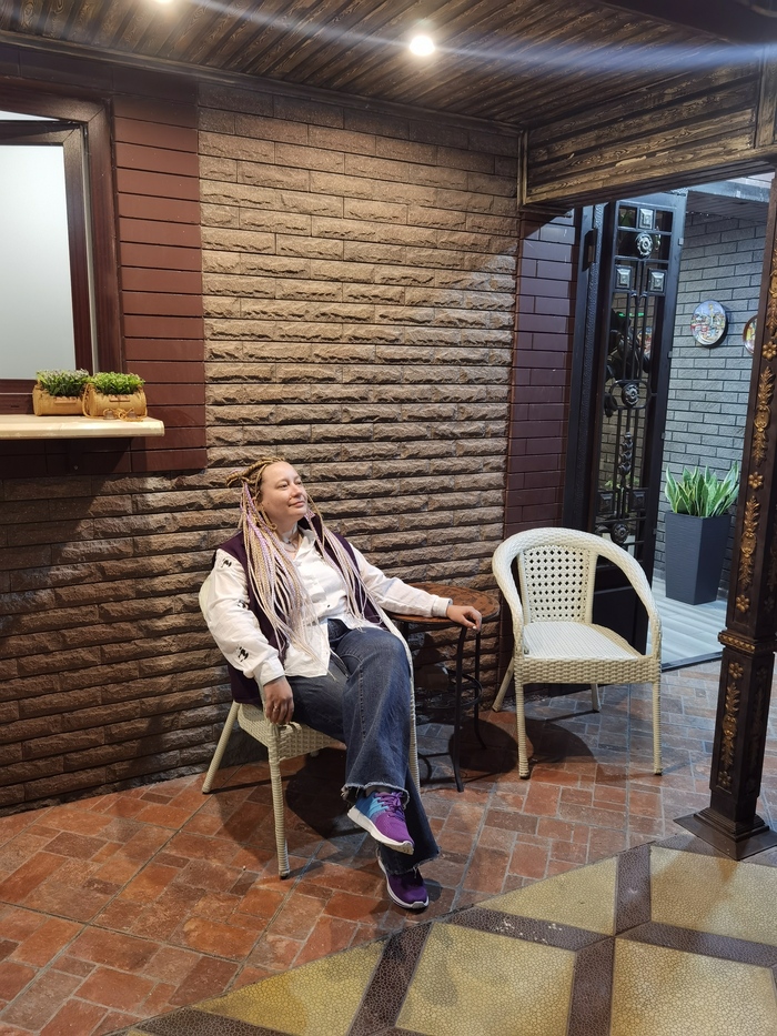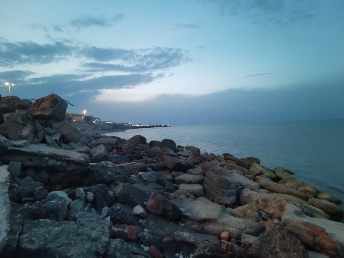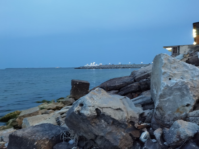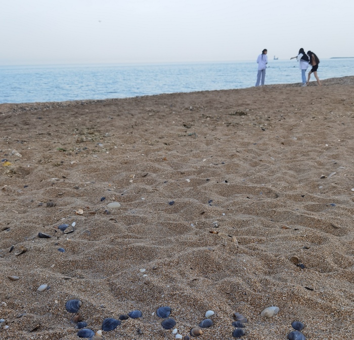 Поехали мы в Каспийск купаться. На условно платный пляж. От бесплатного он отличался наличием кабинок для переодевания и стопкой лежаков, закрытых по случаю еще не начавшегося сезона. Но мы разместились на полотенчиках, лучших друзей галактических автостопщиков, однако море было неприятно холодным, поэтому пару раз окунувшись, поскучав на пляже, выложив ракушками неприличное слово и выковыряв из песка проросшие абрикосовые косточки с целью попытаться вырастить дома (не вышло), поехали на набережную гулять. Там пошарохались туда-сюда, дождались темноты и перед самолетом поужинали в бургерной. Первый раз я ела нормальный бургер, а не то, что продается в макдаках и прочих киэфсишках. И мне понравилось! В меру сочно, пахнет дымом и в котлете отсутствует кислота, присущая мясу в фастфудницах.