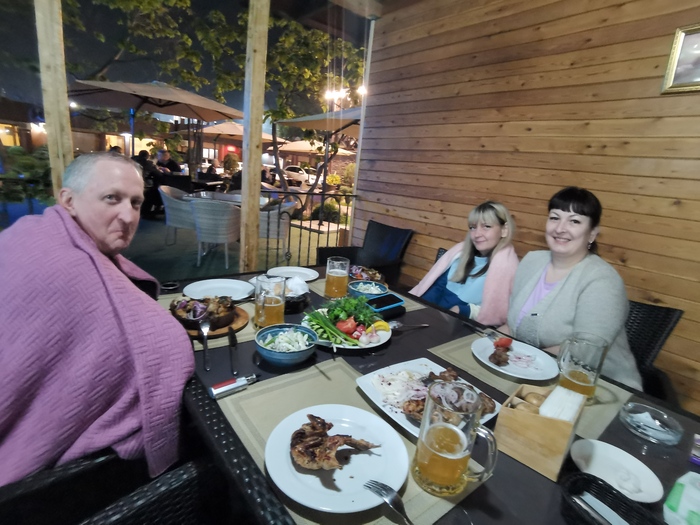 Проснулись мы с легким чувством прощания с ежедневными семиутрениими пробками на перекрёстке. Нам нужно было собрать чемоданы и выселиться до 12 часов, но чтобы не ездить с баулами, мы попросили подержать их в подсобке часов до двух. Потому что с утра планировали скататься на рынок и за сувенирной, затем пообедать на прощанье в Мимино, а уж потом тюленить на пляж и на самолет в одиннадцать вечера. Теоретически мы еще могли сдать машину, но решили переплатить 500 р, зато не таскаться с чемоданами. Позавтракав остатками вчерашнего пиршества. И по максимуму опустошив запасы с холодильника погрузились и двинули на рынок.
