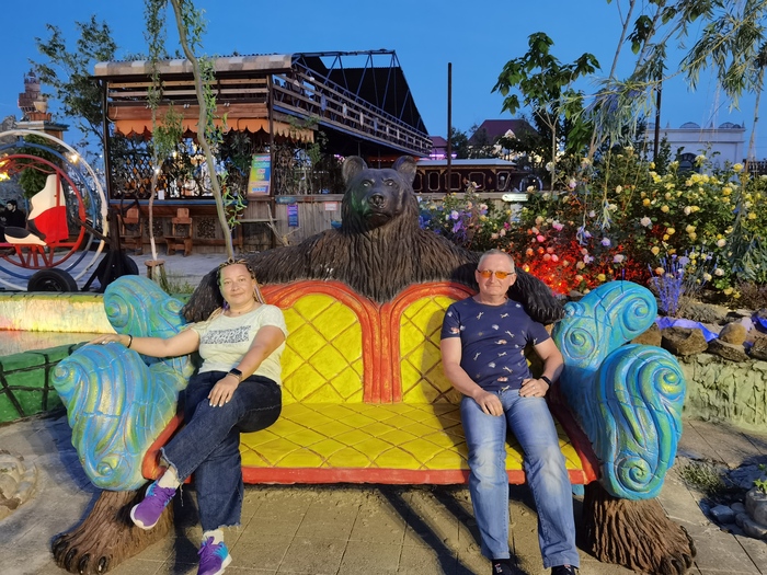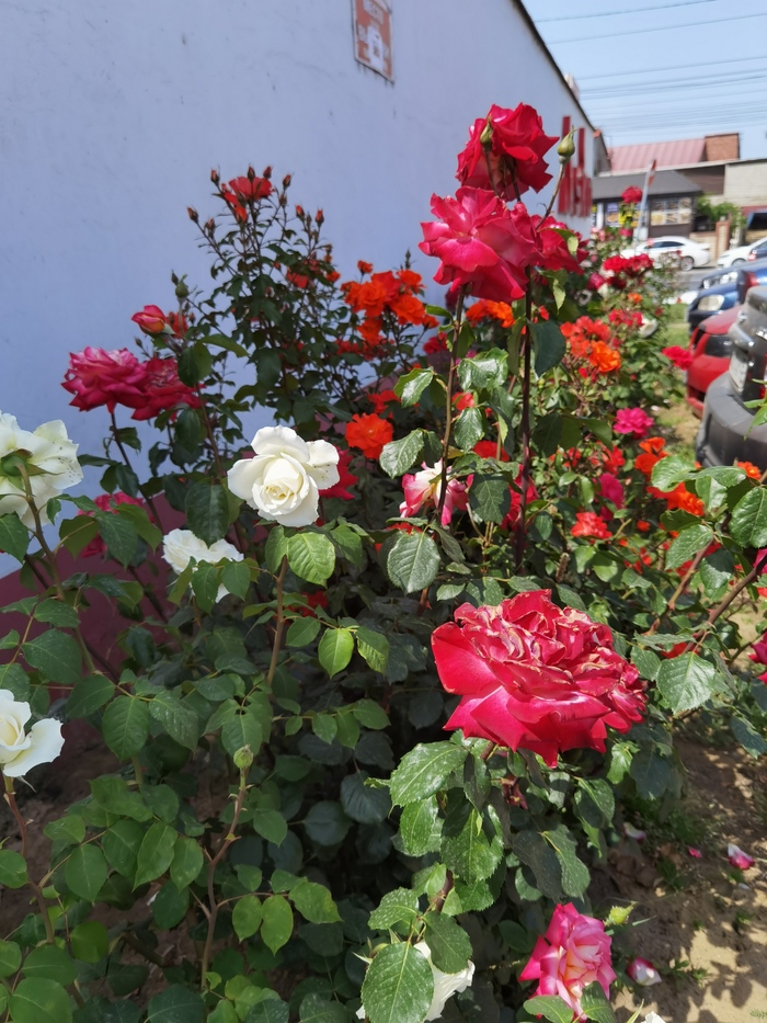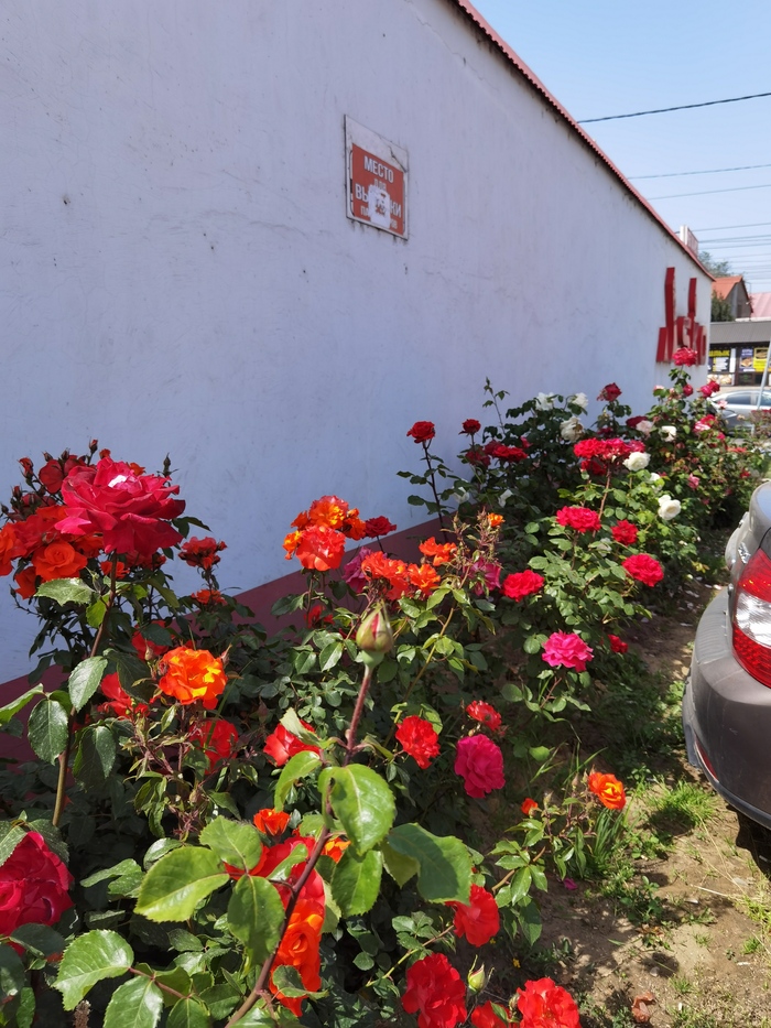 Поехали к гостинице, забирать вещи. Выгружать покупки не стали, пеложив чемоданы на заправке, которая тоже была усажена розами в невероятном разнообразии сортов