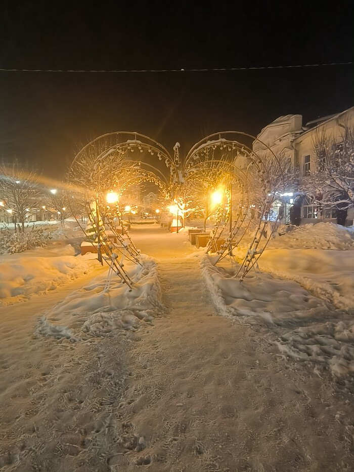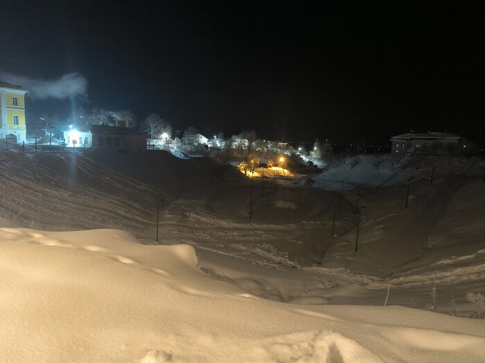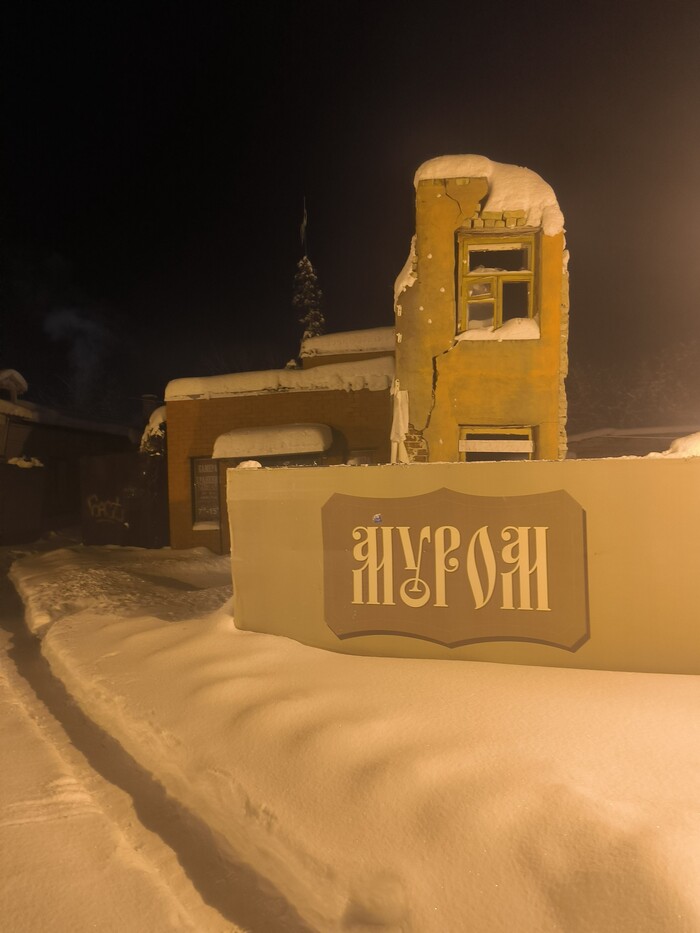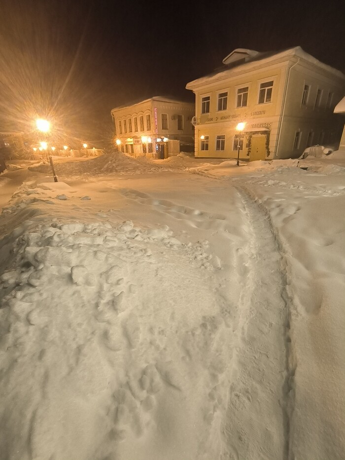 За 12 часов проехал 1200 км до Мурома. Хотел поспать в машине да дальше поехать, но когда я ещё буду в Муроме? Поэтому снял квартирку и погулял маленько. Очень маленький, заснеженный, но милый город. Заеду на обратном пути, посмотрю хоть памятники какие-то, а то кроме баров никуда ноги не занесли.