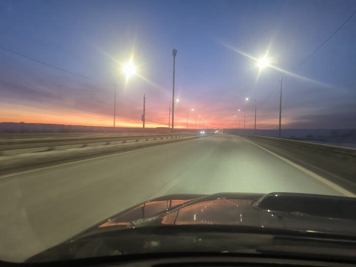 5. Вся дорога освещена ночью. Вся. Фонари по всей длине.