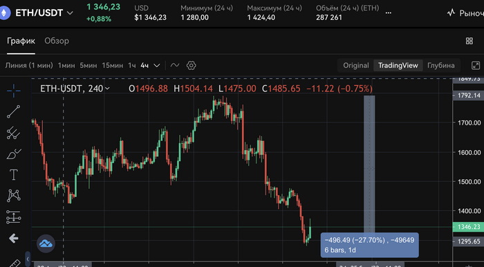 Поставил тейк-профит на 2% от точки входа, улетела на 11%, вышло 253$, а упущенная прибыль - 1000-1200$>
