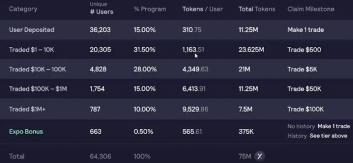 Пример 1: Dydx - декс бирржа, которая раздала, например, если ты наторговал объем в 100k$ на их бирже, то получил бы 6400 токенов Dydx. Ты мог продать их по курсу 13$ за монету = 83.200$. Сколько бы ты потратил на комиссию? Долларов 100. Окей, если бы ты натоговал от1$ до 10.000$ , то получил бы 1163 токена = 15119$, а за пул ликвидности давали - 310 токенов.