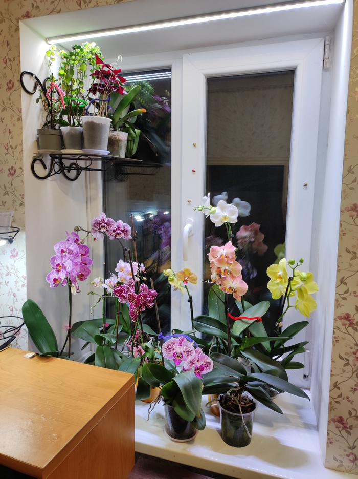 Вообще важно запомнить одно правило - здоровое растение у которого есть все условия для активного развития обязательно зацветёт. И чем здоровее растение тем пышнее будет цветение ведь цветы отнимают очень много сил и энергии, и для пышного цветения нужен соответствующий уход. На самом деле всё не так сложно как кажется, если к примеру у вас светлое окно а на окне одна-две орхи то досветка вам вряд ли понадобится, но нужно позаботится что бы света реально было достаточно а солнце не светило на орху после 9-10 утра и до 6 вечера чтоб не пожечь листья. Всё индивидуально, но как показывает практика в нашем регионе досветка решает много вопросов.