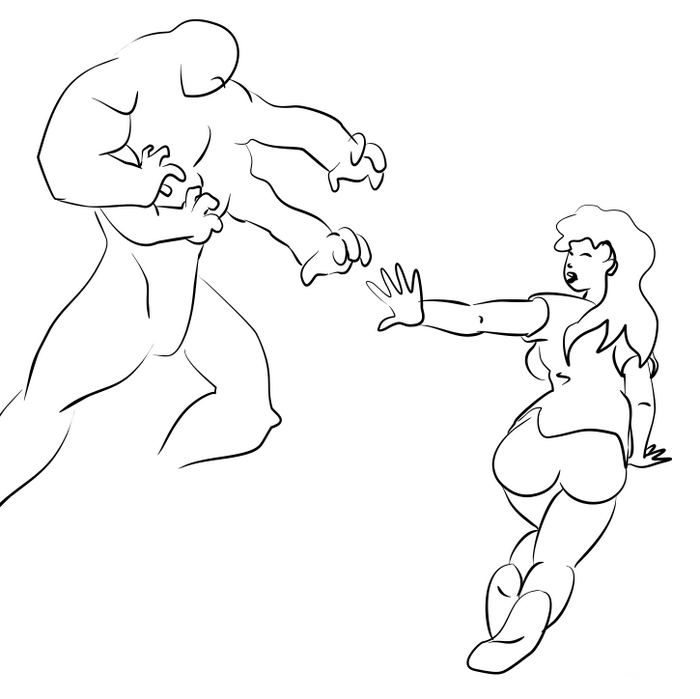 В отличии от предыдущей картинки бумажного эскиза от руки на этот раз не было. Продолжая осваивать Корел, накидал от руки контуры девушки сразу в программе. Интересно было попробовать какой-то необычный динамичный ракурс - супергеройское приземление, прыжок, полет или падение. А получилось вот такое (с граблями вместо конечностей - "художек" не заканчивал))):