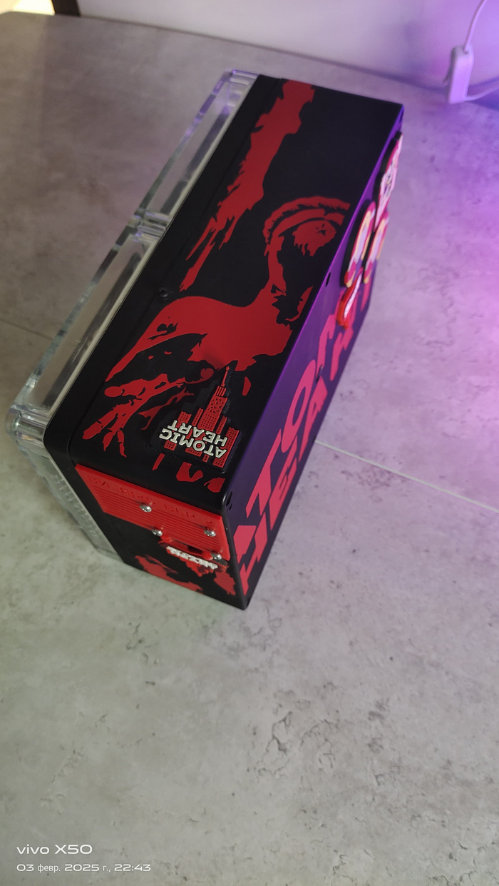 *Сетевой шнур, HDMI на внешний монитор, питание 4-pin на шлейф PCI-адаптера, кнопки включения и ускорителя... Все на месте*