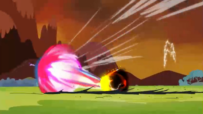 И пока я спрашиваю себя, почему аликорны вчетвером не выступили против злодея, разворачивается неслабая битва, и ведётся она на равных. Никто не может переломить ход боя в свою пользу.