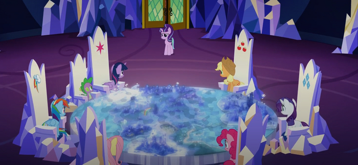 Но свой ключ Искорка ещё не получила, а тут её срочно вызывают в Кантерлот и сообщают неприятные новости: Дискорд присоединился к Тиреку.