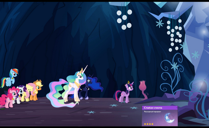 Принцессы Селестия и Луна освобождены от коконов из сорняков, да еще и лут получен (в виде шкатулки из цветка).
