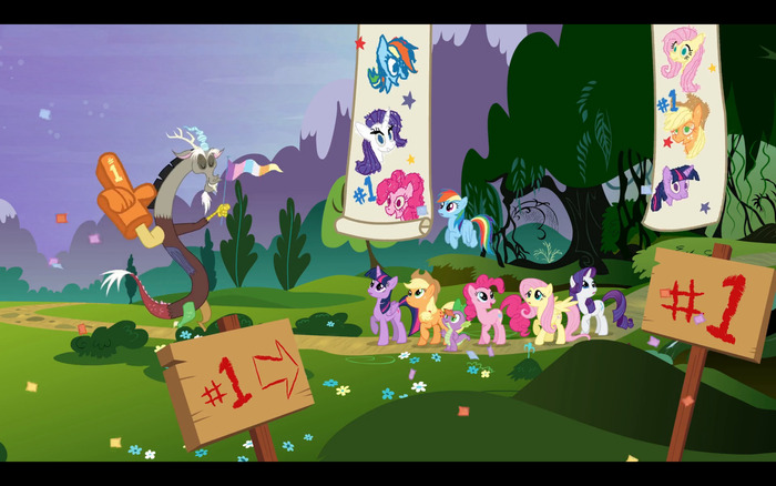 Очередная угроза предотвращена и даже Гринпис доволен спасённым деревом. Дискорд же пост-иронично встречает героинь на выходе из леса.
