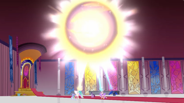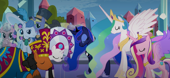 Все аликорны (Каденс, Луна, Селестия и наша героиня) присутствуют на этом мероприятии.