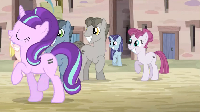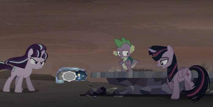 Одолев по пути монстра, друзья решают отослать Твайлайт в Понивиль (ибо рисковать оставшейся принцессой вредно для стабильности государства).
