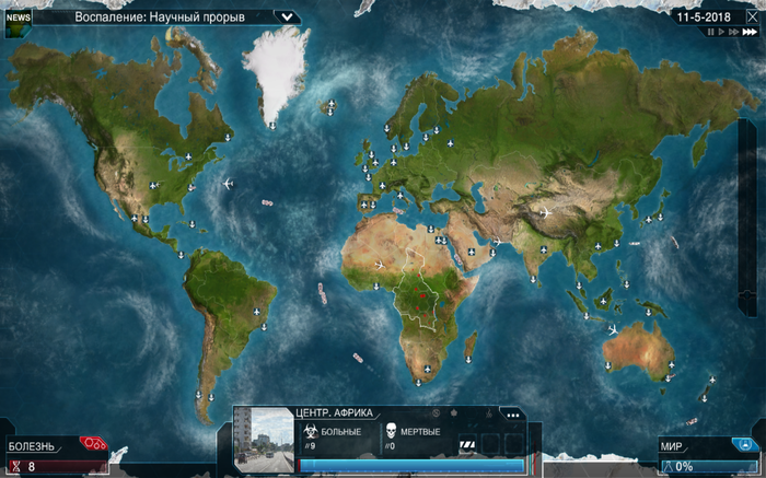 В это время люди могут разработать лекарство против вируса и тогда мы проиграем. Ниже прилагается несколько скринов из игры