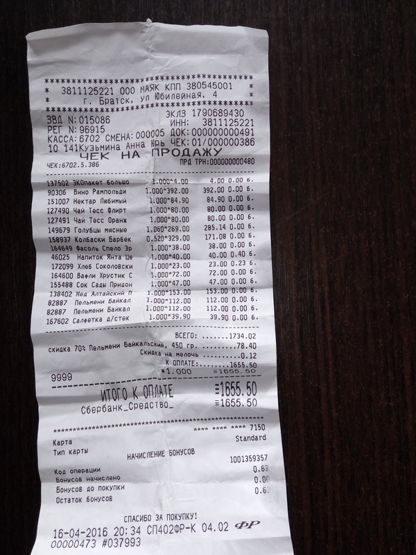 Сама торговая точка действительно приятная, но один момент оставил неприятный осадочек. Сеть активно пиарит свою бонусную программу, плюс дарят карту за крупную покупку. Что из себя представляют бонусы: