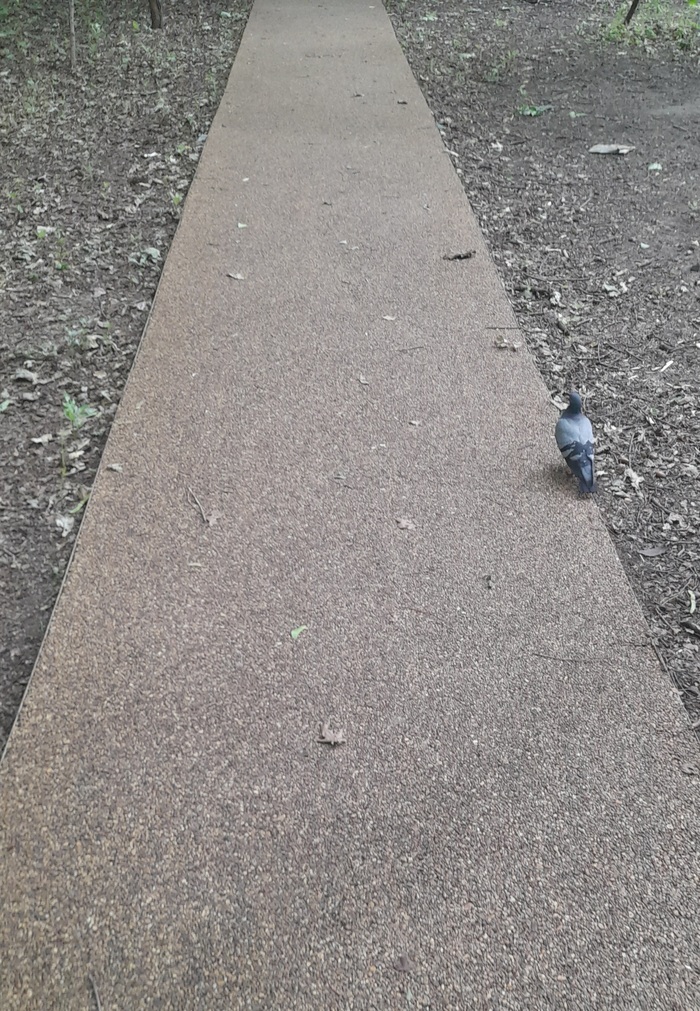 Собственно, вон она идёт асфальтовая дорожка от мостов, чуть вниз. И конечно, многим интереснее срезать по месту, где разобрали железнодорожную колею.