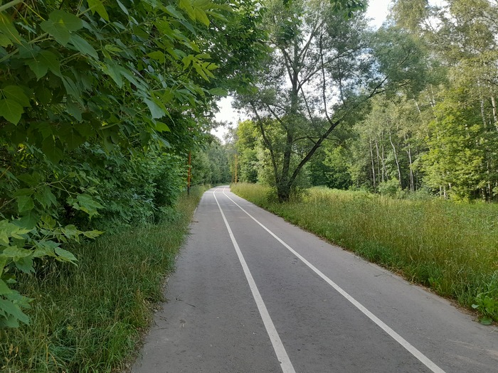 А это уже дорога в сторону Измайловской пасеки, свежеобновлённый асфальт. Кстати, я думал, что здесь в горочку не так быстро пойду, а оказалось, что даже чуть нагнал свой график.