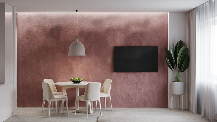 стена с ТВ тоже акцентная. Телик не высоко - так настояла хозяйка. Вообще 1200мм до 1/3 телика нормально. Тут чуть выше.
