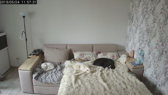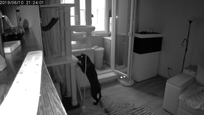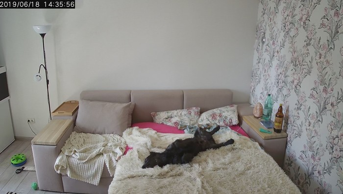 Жили до этого на съёмной квартире, изначально была только собака. Затем подобрали котёнка. Еду оставляли на когтеточке и через некоторое время стал постоянно пропадать весь корм. Стало собственно понятно сразу, что пылесосит всё собака. Ну и на этой почве купили ip камеру. Оказалось жизнь домашних животных когда они остаются одни дома очень интересная)))